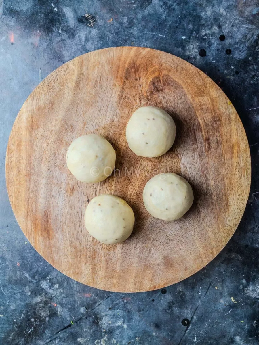 - Divide the dough into four pieces and roll them into smooth balls. (Fig 2)